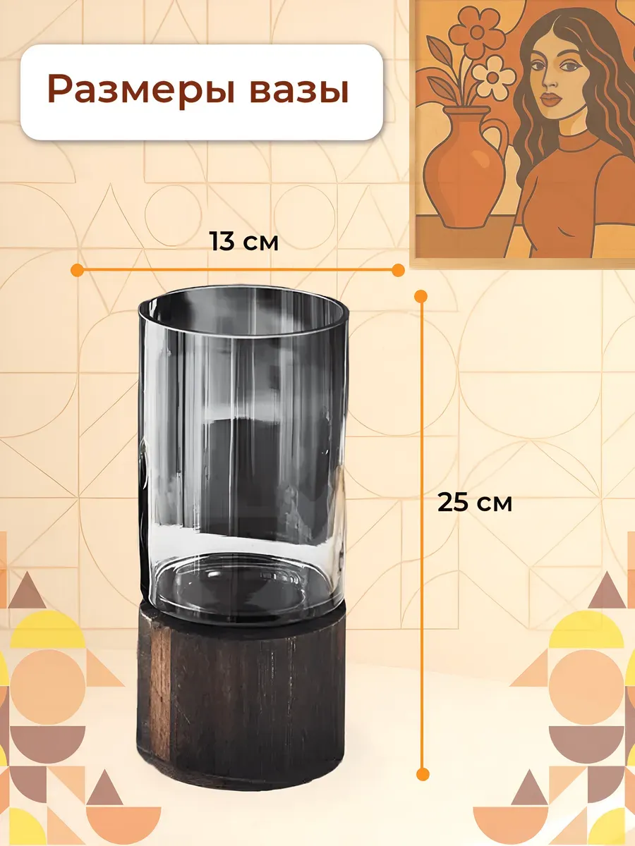 Это прекрасный подарок на Новый год и Рождество, новоселье, свадьбу или день рождения. Ваза для цветов стеклянная с деревянным основанием — подарок, который говорит о вашей заботе и внимании к деталям. Каждый раз, наполняя её свежими цветами, получатель будет вспоминать о вас с благодарностью.