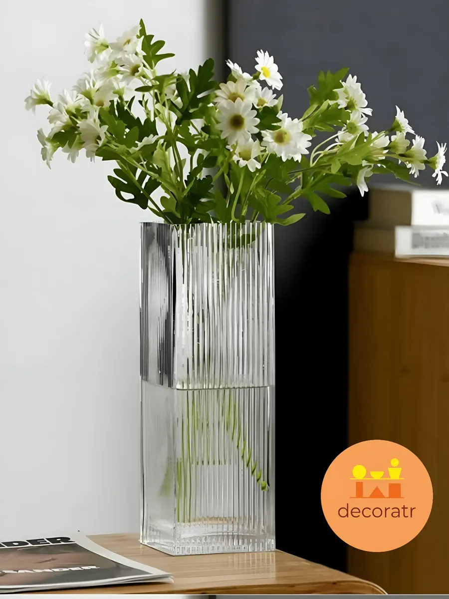 Вот это да! Вертикальные рифлёные полосы создают потрясающий оптический эффект – ваза буквально светится изнутри, превращая обычный букет в королевскую композицию. Именно то, что нужно для создания атмосферы роскоши в вашем доме!