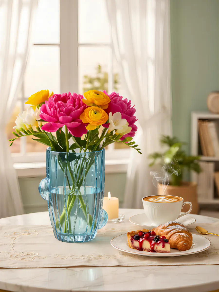 Эта ваза для букетов идеально подходит для роз, тюльпанов, хризантем, гербер и даже сухоцветов. Широкое горлышко позволяет создавать пышные композиции, а устойчивое основание гарантирует, что ваш букет будет надёжно защищён от случайных касаний.
