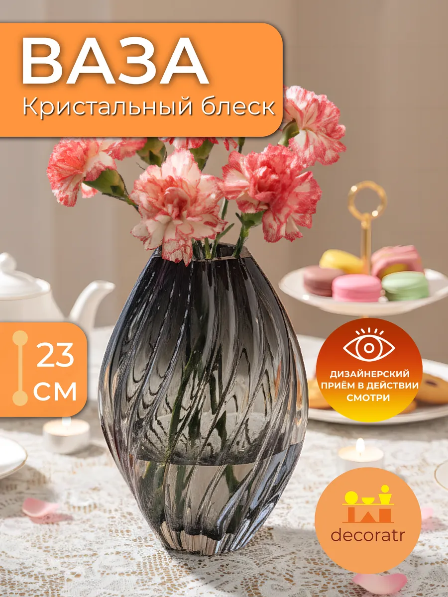 Вот это да! Такая ваза интерьерная стеклянная станет центром внимания в любом пространстве — от современной гостиной в стиле минимализм до классического кабинета. Граненая поверхность отражает стиль арт-деко, добавляя нотки винтажной роскоши в ваш интерьер.