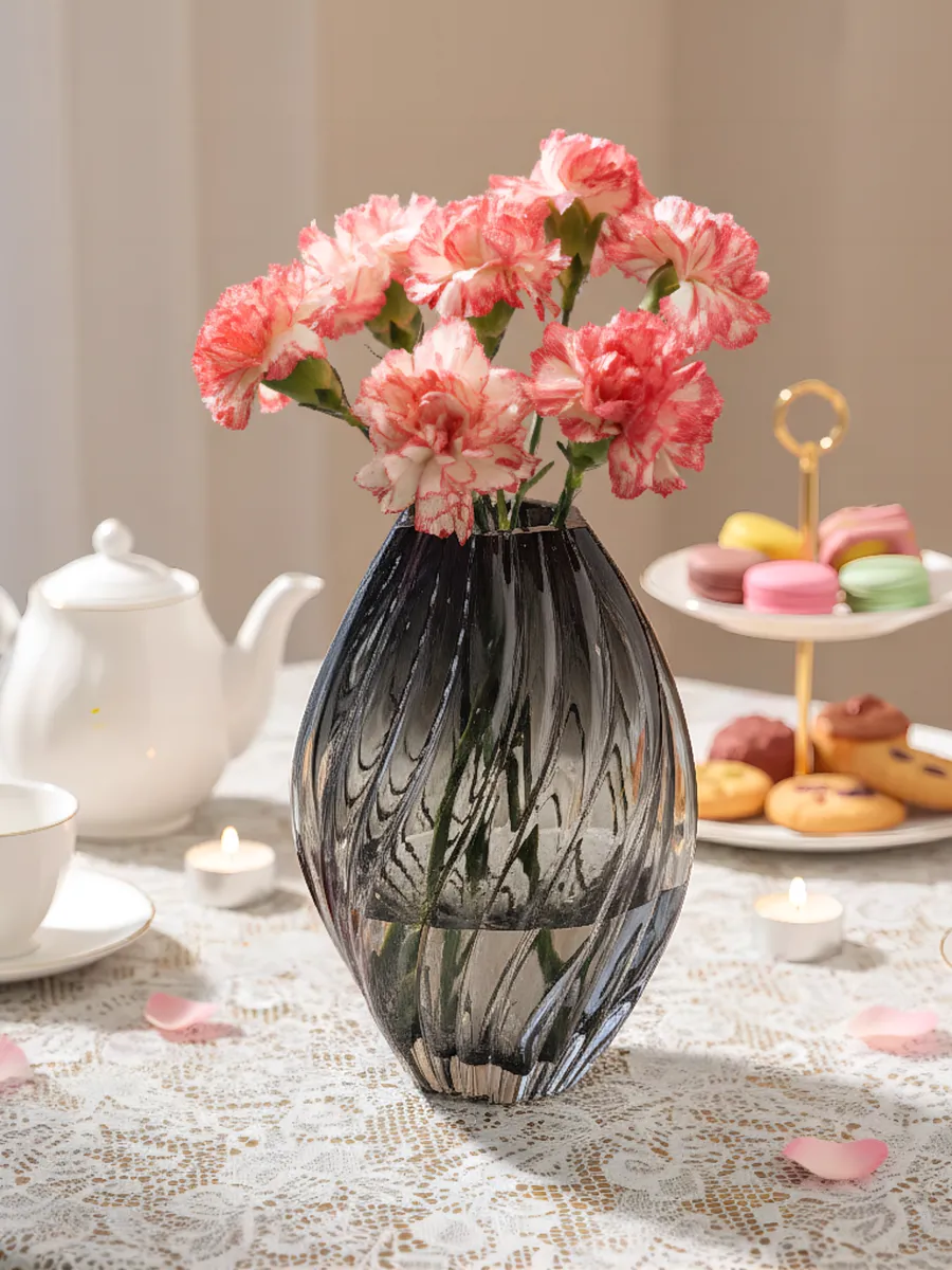 Эта ваза для букетов идеально подходит для роз, пионов, гвоздик и даже изящных сухоцветов. Её устойчивая овальная форма гарантирует, что ваши любимые цветы будут в полной безопасности, а широкое горлышко позволяет создавать роскошные композиции.