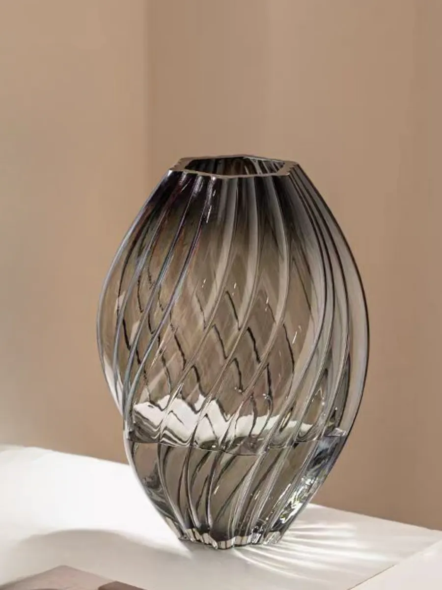 Каждая грань этой стеклянной вазы словно отшлифована мастером-ювелиром, создавая завораживающую игру света и тени. Дымчато-серый оттенок с прозрачными переходами придаёт изделию аристократическую элегантность — именно то, что нужно для создания утончённой атмосферы!