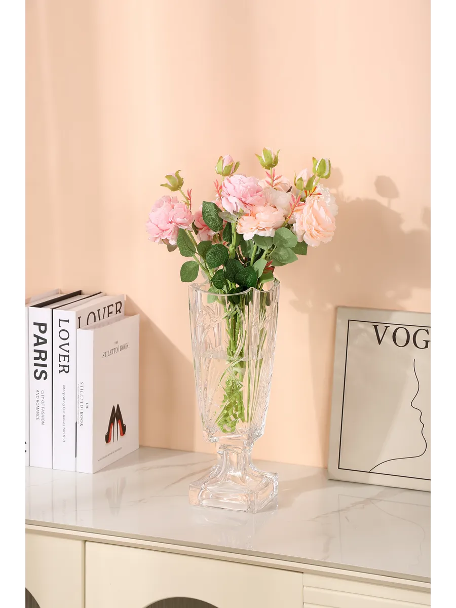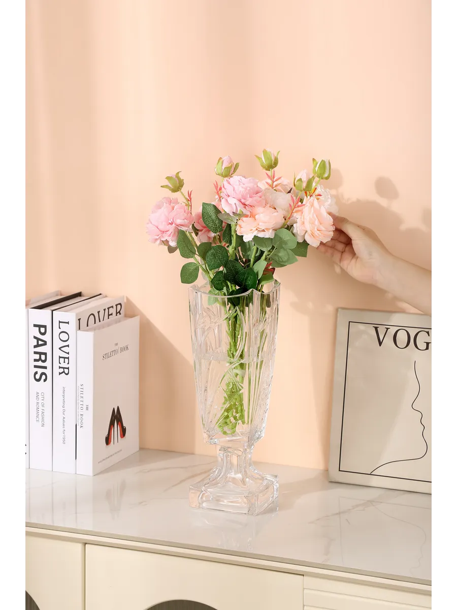 Эта напольная ваза стеклянная идеально подходит для роз, пионов, хризантем и даже высоких веток сухоцветов. Благодаря своей высоте 35 см, она создаёт элегантный силуэт, который притягивает взгляды и вызывает восхищение. Вот это да — как же красиво смотрятся в ней длинностебельные цветы!