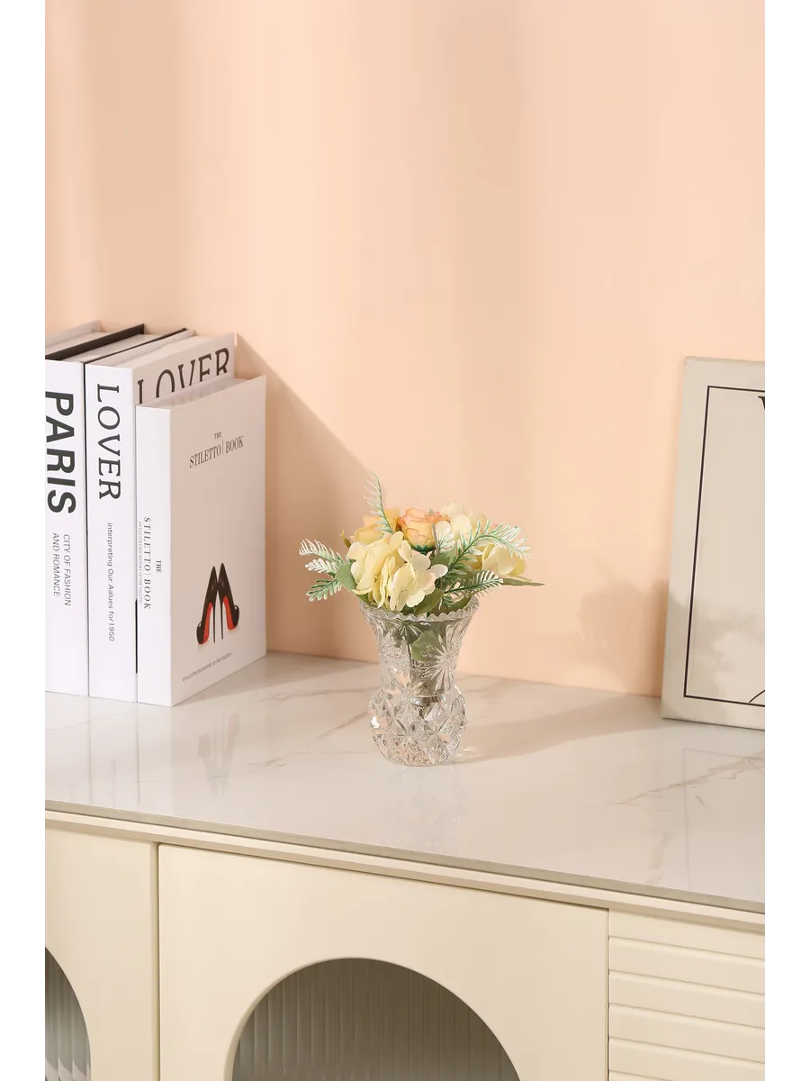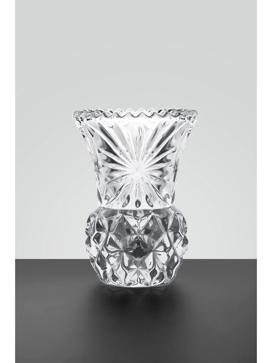 Каждая грань этой стеклянной вазы для цветов словно драгоценный кристалл ловит и преломляет свет, создавая неповторимую игру теней и бликов. Широкое горлышко идеально подходит для букетов роз, тюльпанов, пионов или изящных сухоцветов — каждый цветок в ней выглядит как звезда на подиуме!