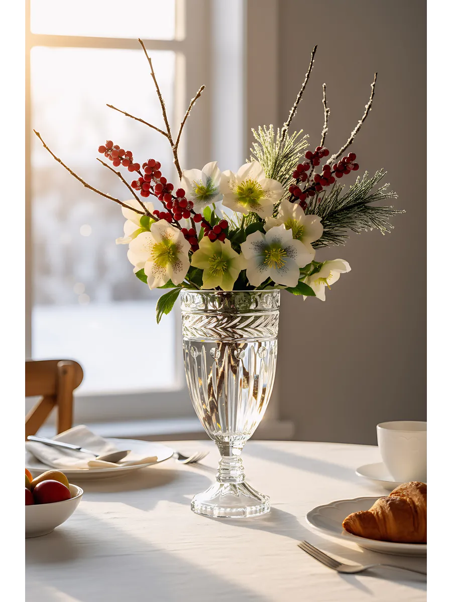 Стиль: Классический стиль с элементами арт-деко, ассоциируется с винтажной хрустальной посудой и торжественными сервировками