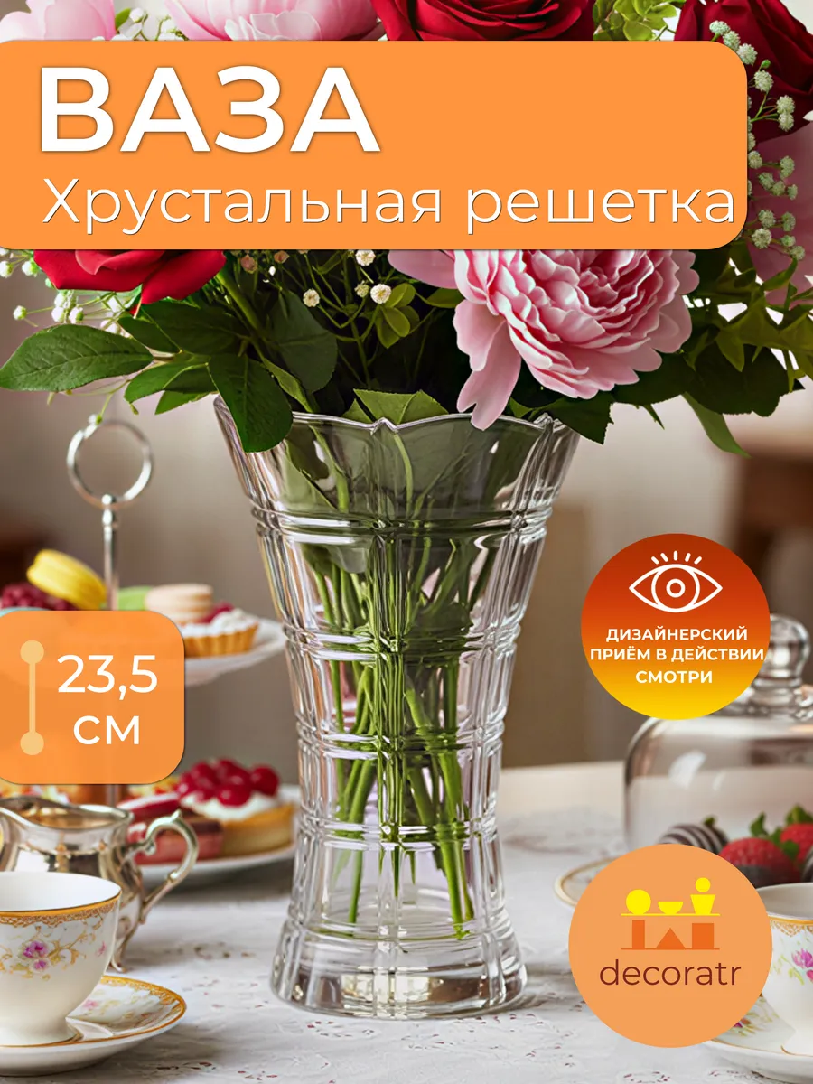 Представьте, как солнечные лучи играют в гранях этой удивительной вазы высотой 23,5 см! Ваза «Хрустальная Решётка» — стеклянная интерьерная ваза для цветов, которая мгновенно превращает обычный букет в произведение искусства. Каждая грань этого стеклянного чуда словно ловит и преломляет свет, создавая волшебную игру бликов в вашем доме.