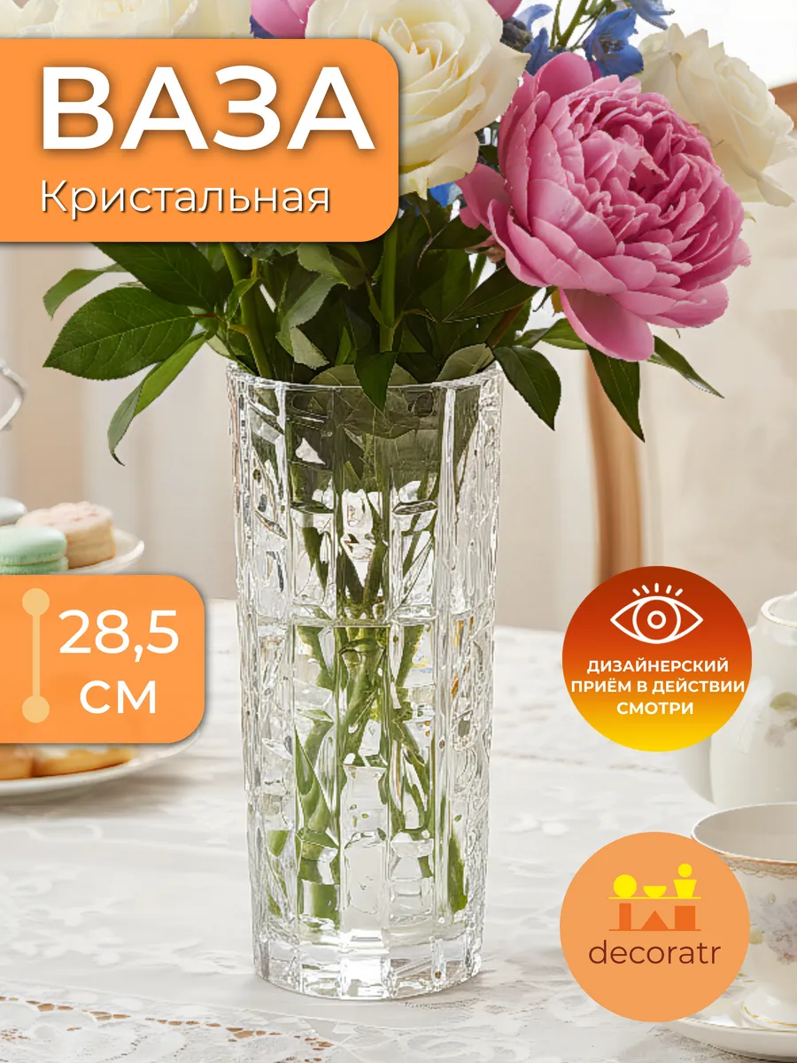 Представьте, как солнечные лучи играют в гранях этой удивительной вазы высотой 28,5 см, создавая тысячи радужных бликов по всей комнате! Ваза «Кристальная» — это настоящее произведение искусства из прозрачного стекла, которое мгновенно преображает любой интерьер.