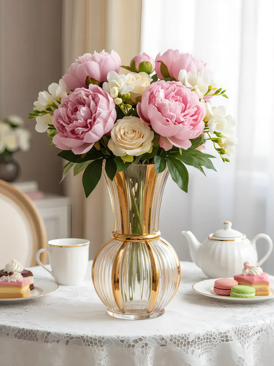 Эта стеклянная ваза для дома идеально подходит для роз, тюльпанов, пионов и изысканных сухоцветов. Широкое горлышко позволяет создавать пышные композиции, а устойчивое основание гарантирует безопасность даже самого роскошного букета.