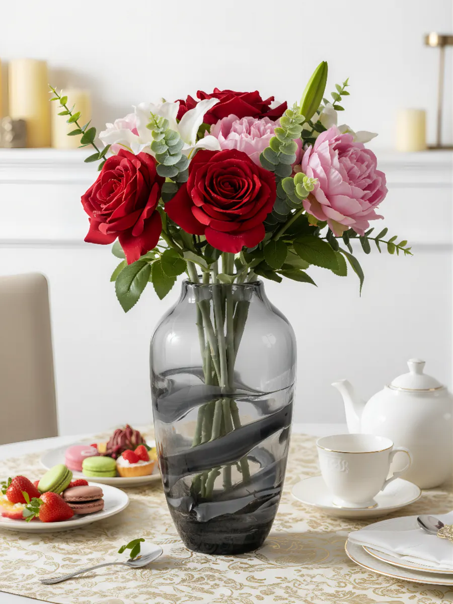 Эта стеклянная ваза для дома идеально подходит для букетов роз, пионов, хризантем и даже сухоцветов — широкое горлышко позволяет создавать объёмные композиции, а устойчивое дно гарантирует безопасность даже самых пышных букетов. Ваза для цветов стеклянная станет центральным элементом вашей гостиной, спальни или рабочего кабинета.
