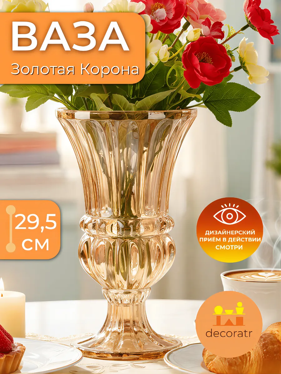 Представьте, как солнечные лучи играют в гранях этого хрустального чуда высотой 29,5 см! Ваза «Золотая корона» — это не просто интерьерная ваза для цветов, это настоящее произведение искусства, которое превратит любой букет в королевский шедевр.