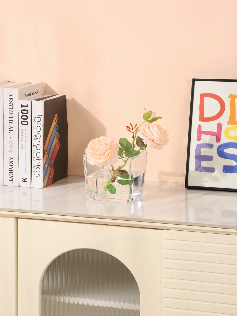 Эта изящная стеклянная ваза квадратной формы словно создана из чистейшего горного хрусталя. Её безупречно прозрачные стенки играют со светом, создавая волшебные блики и отражения, которые танцуют по всей комнате. Толстое стекло дарит ощущение надёжности и качества — вы почувствуете его приятную прохладу и солидный вес в руках.