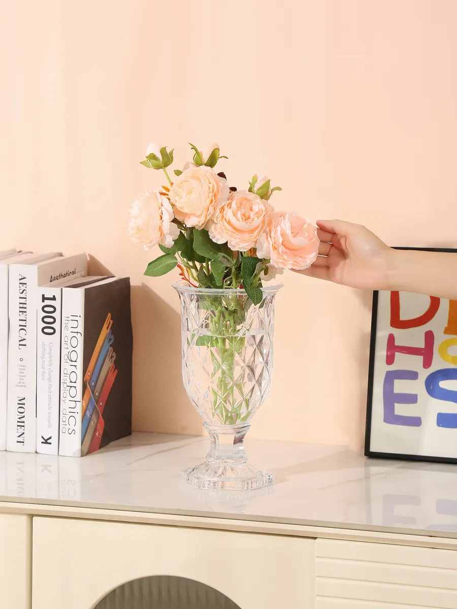 Интерьерная ваза из стекла идеально впишется в стиль арт-деко, классику или современный минимализм. Представьте её в гостиной на журнальном столике, в спальне на туалетном столике или в прихожей на комоде — везде она станет центром притяжения взглядов! Deco-Decoratr рекомендует использовать такие вазы для создания акцентных композиций в любом помещении.