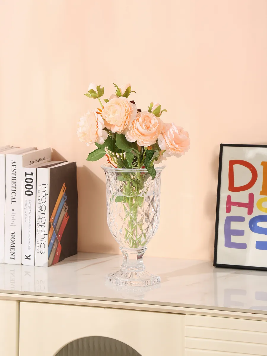Благородная форма кубка на элегантной ножке делает эту декоративную вазу универсальным решением для любых цветов. Розы, пионы, тюльпаны, хризантемы или изящные сухоцветы — всё будет выглядеть торжественно и стильно! Широкое горлышко позволяет создавать объёмные композиции, а устойчивое основание гарантирует безопасность даже самых пышных букетов.