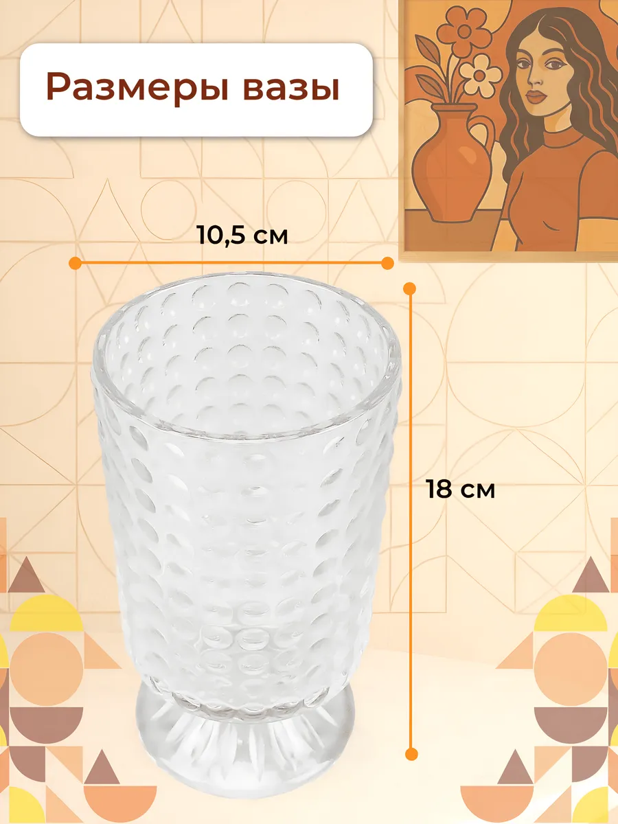 Стеклянная ваза для цветов с узором «Капельки росы» — превратите дом в цветущий сад!