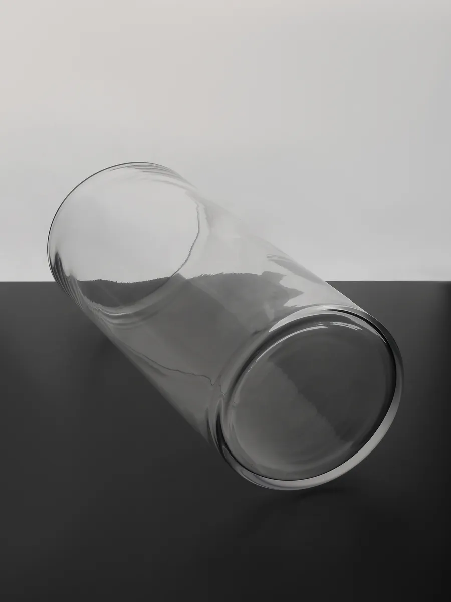 Форма: Классическая цилиндрическая форма с прямыми стенками и широким горлышком. Пропорции идеально сбалансированы — высота меньше ширины, что создаёт устойчивую и элегантную конструкцию.