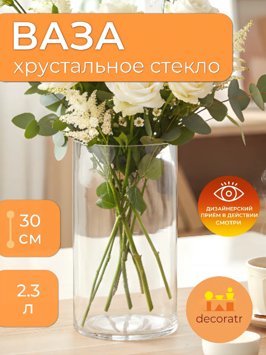 Ваза стеклянная для цветов прозрачная цилиндрическая 30 см — преобразите свой дом одним взглядом!