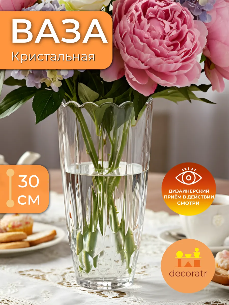 Представьте, как солнечные лучи играют в гранях этой изысканной вазы, создавая волшебные блики по всему дому! Ваза «Кристальная» высотой 30 см — это настоящее произведение искусства из прозрачного стекла, которое мгновенно преобразит ваш интерьер.