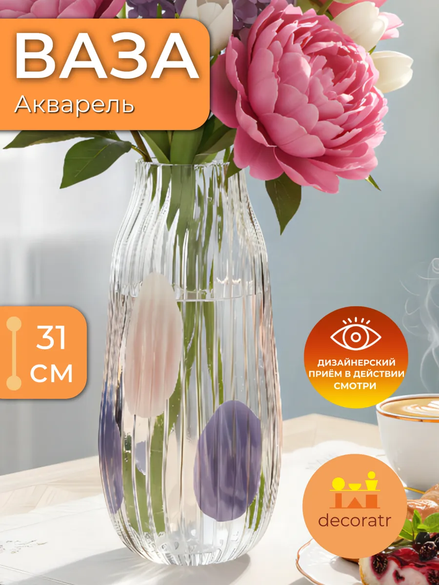 Представьте, как солнечные лучи играют в гранях этой удивительной вазы высотой 31 см, а нежные цветочные мотивы словно оживают на прозрачном стекле! Ваза «Акварель» — стеклянная интерьерная ваза для цветов — это настоящая находка для тех, кто ценит изысканность и художественный вкус.