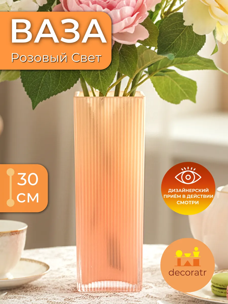 Представьте, как солнечные лучи играют на рифленой поверхности этой изящной стеклянной вазы высотой 30 см! Ваза «Розовый Свет» словно создана для того, чтобы превратить любой букет в произведение искусства. Нежный персиковый оттенок напоминает закатное небо и дарит ощущение тепла даже в самый хмурый день.