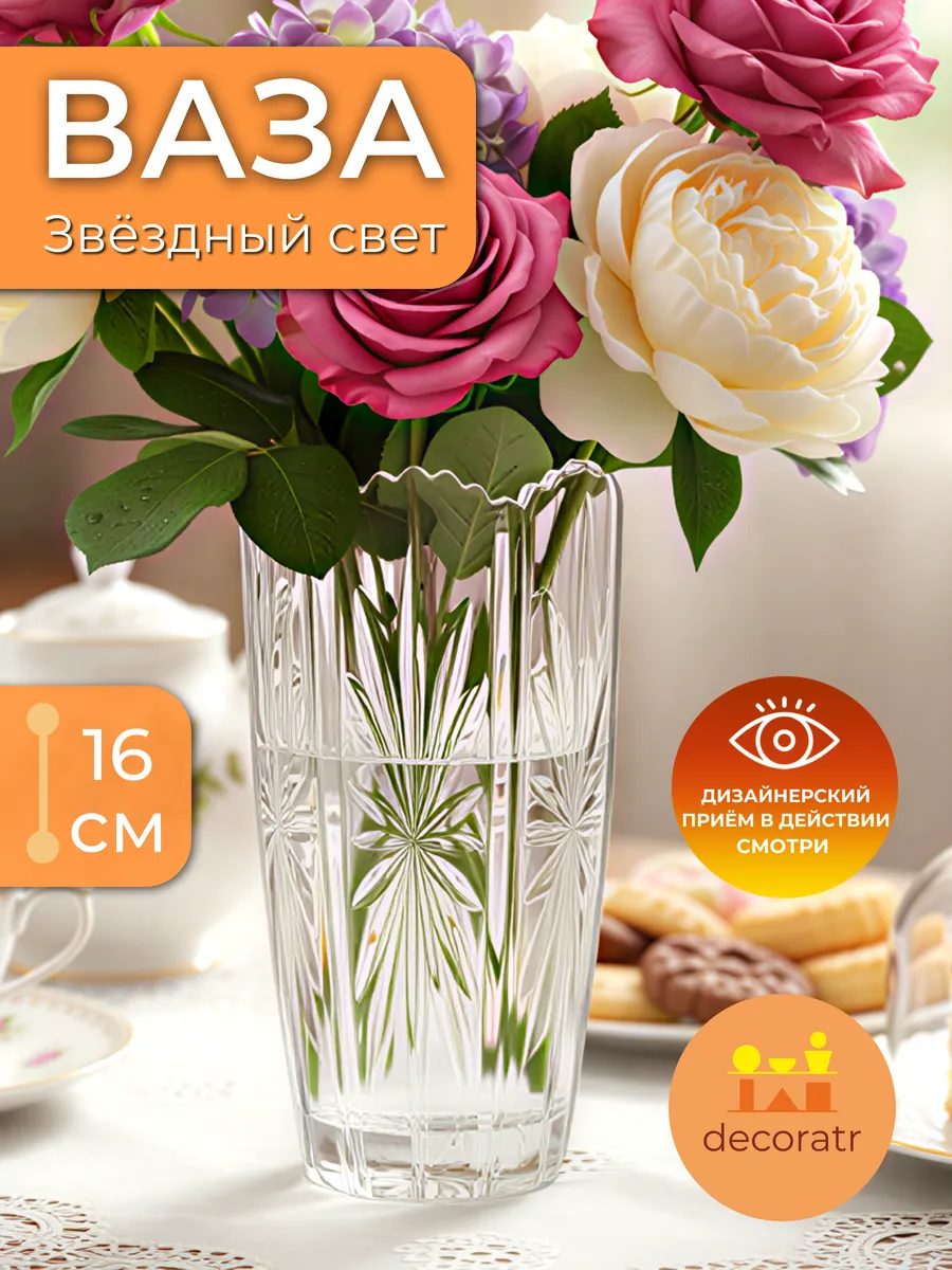 Представьте, как солнечные лучи играют в гранях этого хрустального чуда высотой 16 см! Ваза «Звёздный свет» — это не просто интерьерная ваза для цветов, это настоящее произведение искусства, которое превратит любой букет в королевскую композицию.