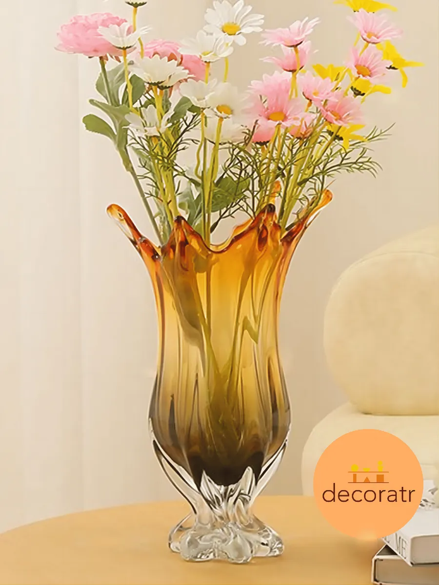 Deco-Decoratr предлагает вам стать обладателем этого янтарного чуда! Ваза стеклянная интерьерная высокая мгновенно повысит статус вашего дома и подчеркнёт безупречный вкус хозяина.