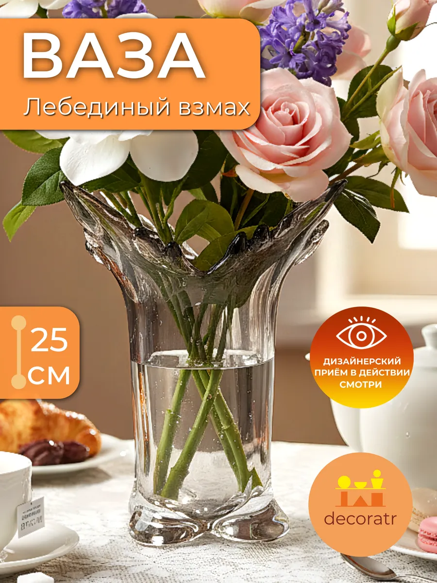 Представьте себе вазу, которая словно застывший в хрустале взмах крыльев! Ваза «Лебединый взмах» высотой 25 см — это не просто стеклянная ваза для цветов, это настоящее произведение искусства, которое мгновенно преобразит ваш интерьер.
