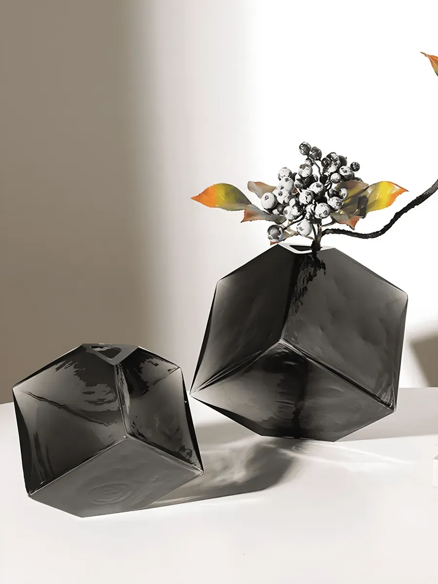 Эта уникальная интерьерная ваза из стекла выполнена в форме геометрического многогранника, напоминающего драгоценный кристалл. Дымчато-серое стекло создаёт завораживающую игру света и тени, а грани преломляют солнечные лучи, рождая тысячи бликов на стенах. Именно то, что нужно для создания атмосферы роскоши!