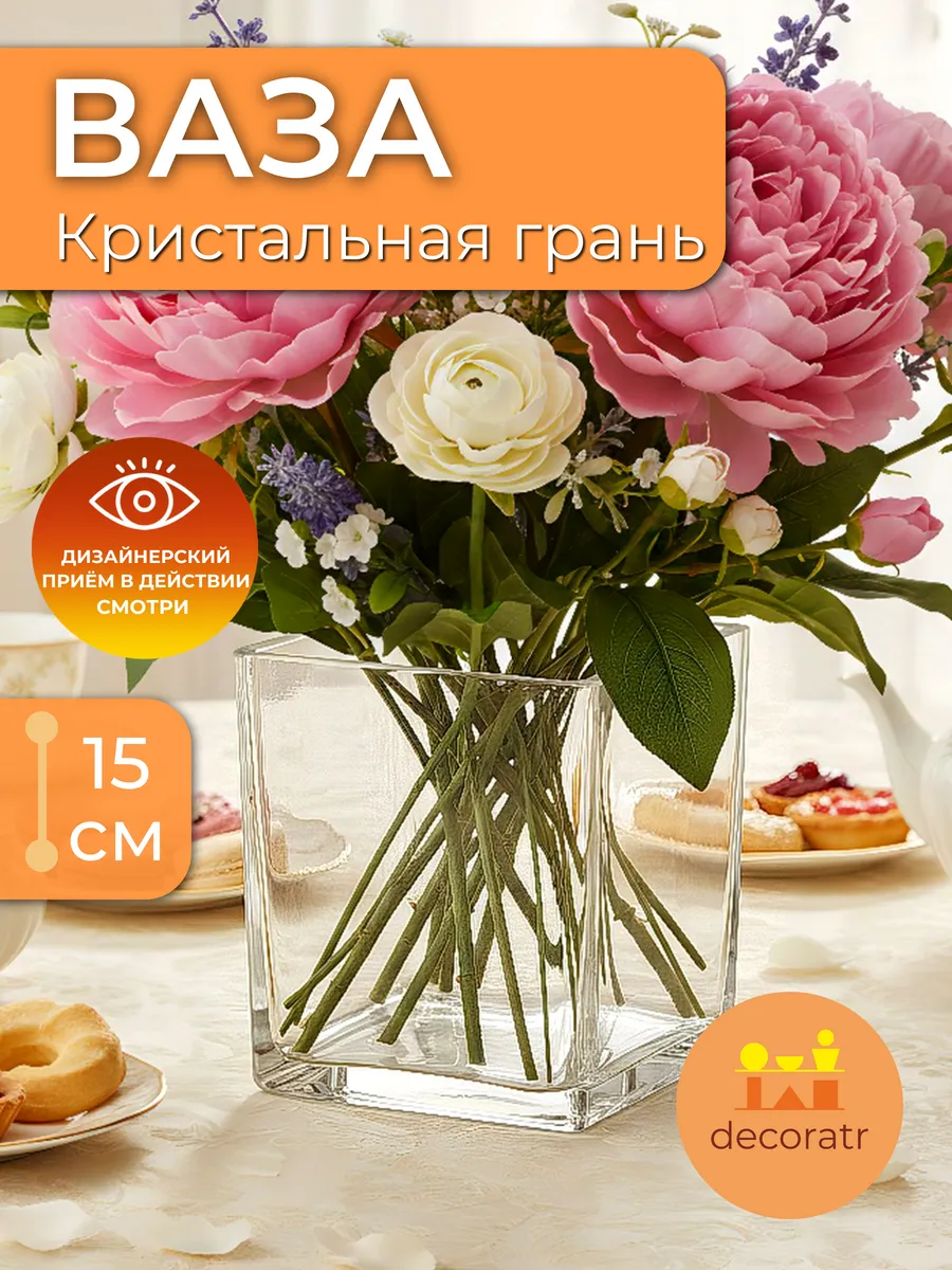 Представьте: ваза высотой 15 см, которая мгновенно превращает любой уголок дома в произведение искусства! Ваза «Кристальная грань» — это стеклянная интерьерная ваза для цветов, которая словно создана для того, чтобы подчеркнуть вашу безупречность вкуса.
