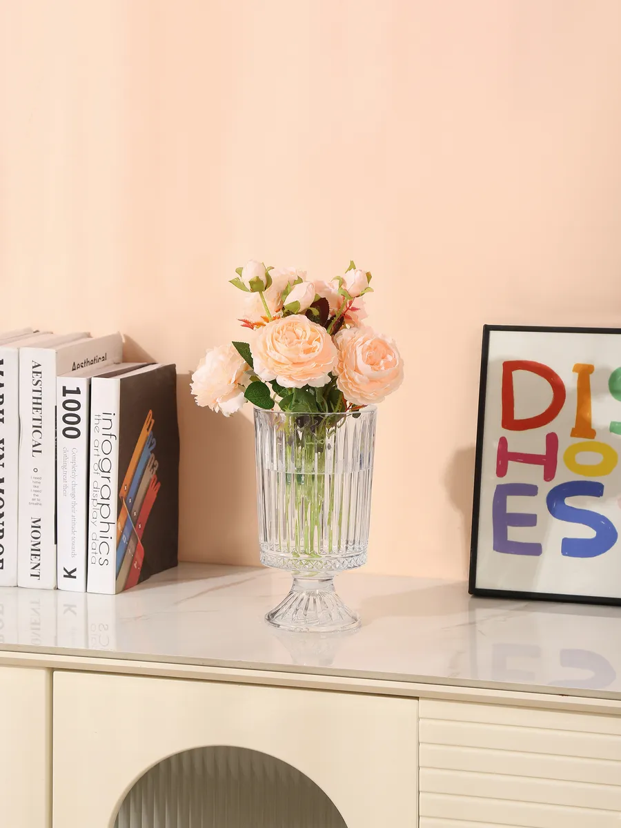 Ваза для цветов стеклянная на ножке — это воплощение классического стиля с нотками арт-деко. Геометрические грани и благородные пропорции делают её универсальной для гостиной, спальни, кабинета или даже ресторана. Именно то, что нужно для создания атмосферы изысканности!
