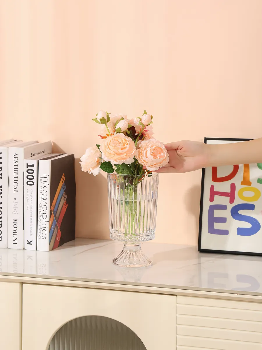 Эта ваза декоративная стеклянная идеально подойдёт для роз, тюльпанов, пионов и даже элегантных сухоцветов. Высота 23 см позволяет создавать роскошные композиции, которые станут центром внимания в любом интерьере.