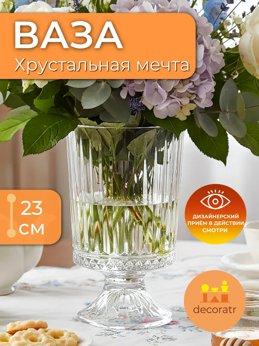 Ваза стеклянная на ножке для цветов прозрачная 23 см — изящный декор для дома!