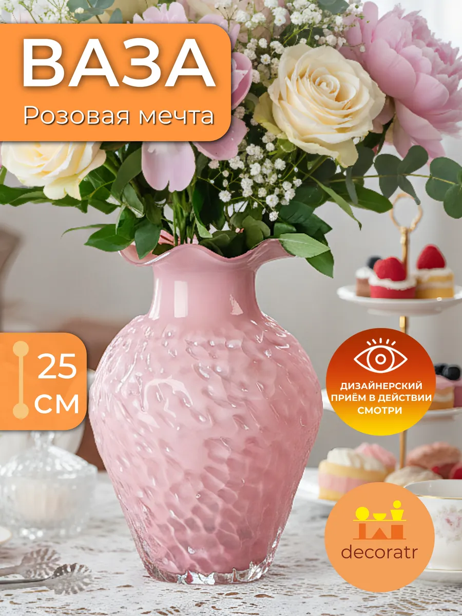 Ваза розовая стеклянная от Deco-Decoratr — это не просто предмет декора, это инвестиция в красоту вашего дома и ваше хорошее настроение каждый день.