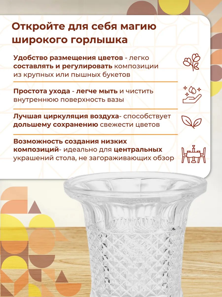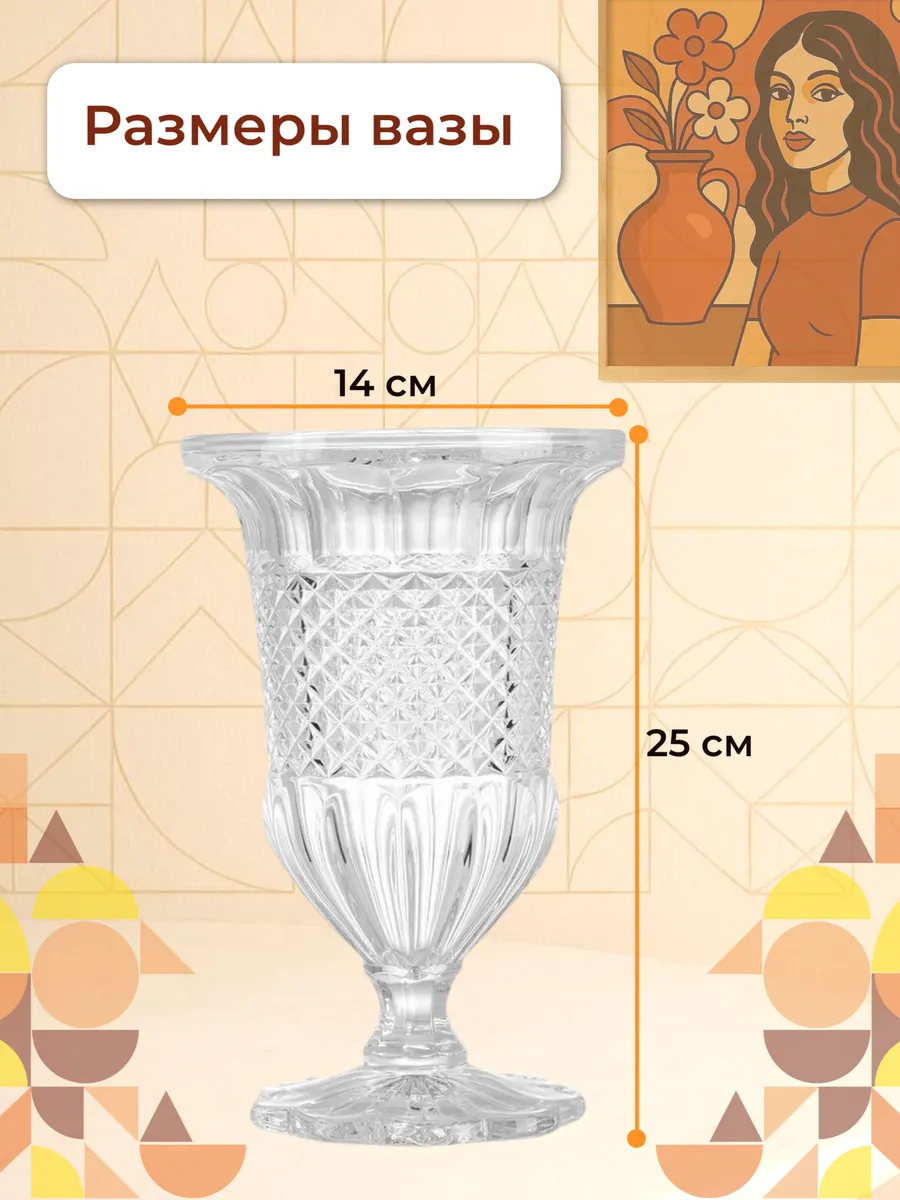 Ваза стеклянная для цветов хрустальная интерьерная 25 см — роскошь в каждой грани!