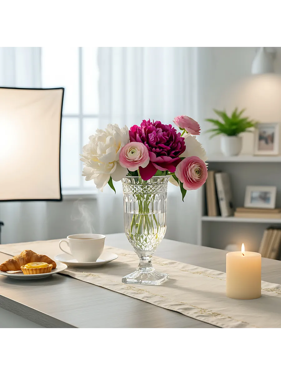 Ваза на ножке для цветов с алмазной огранкой — это инвестиция в красоту вашего дома. Каждый день она будет радовать игрой света, а напольная ваза на ножке такого класса только растет в цене со временем.