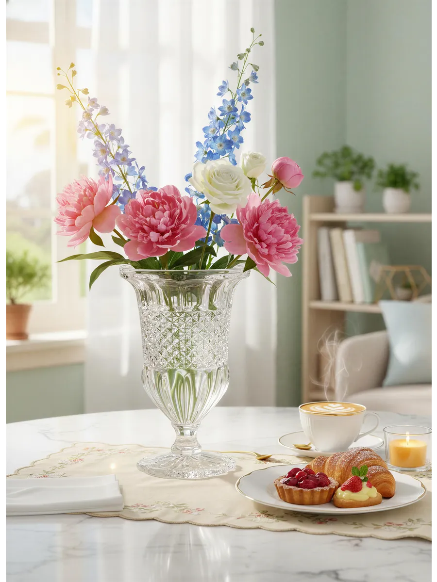 Наш главный декоратор Елена Морозова советует: «Размещайте хрустальную вазу там, где падает естественный свет — у окна или на столе напротив светильника. Игра света в гранях создаст неповторимую атмосферу роскоши. Дополните композицию белыми или кремовыми цветами — это подчеркнет благородство хрусталя».