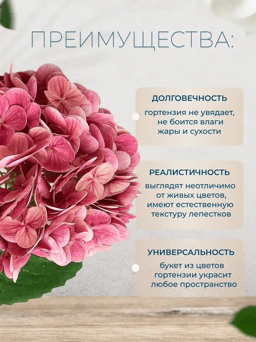 Не откладывайте свою мечту на потом. Попробуйте гортензию реалистичную и увидите, как ваш дом заиграет новыми красками и станет ещё уютнее!