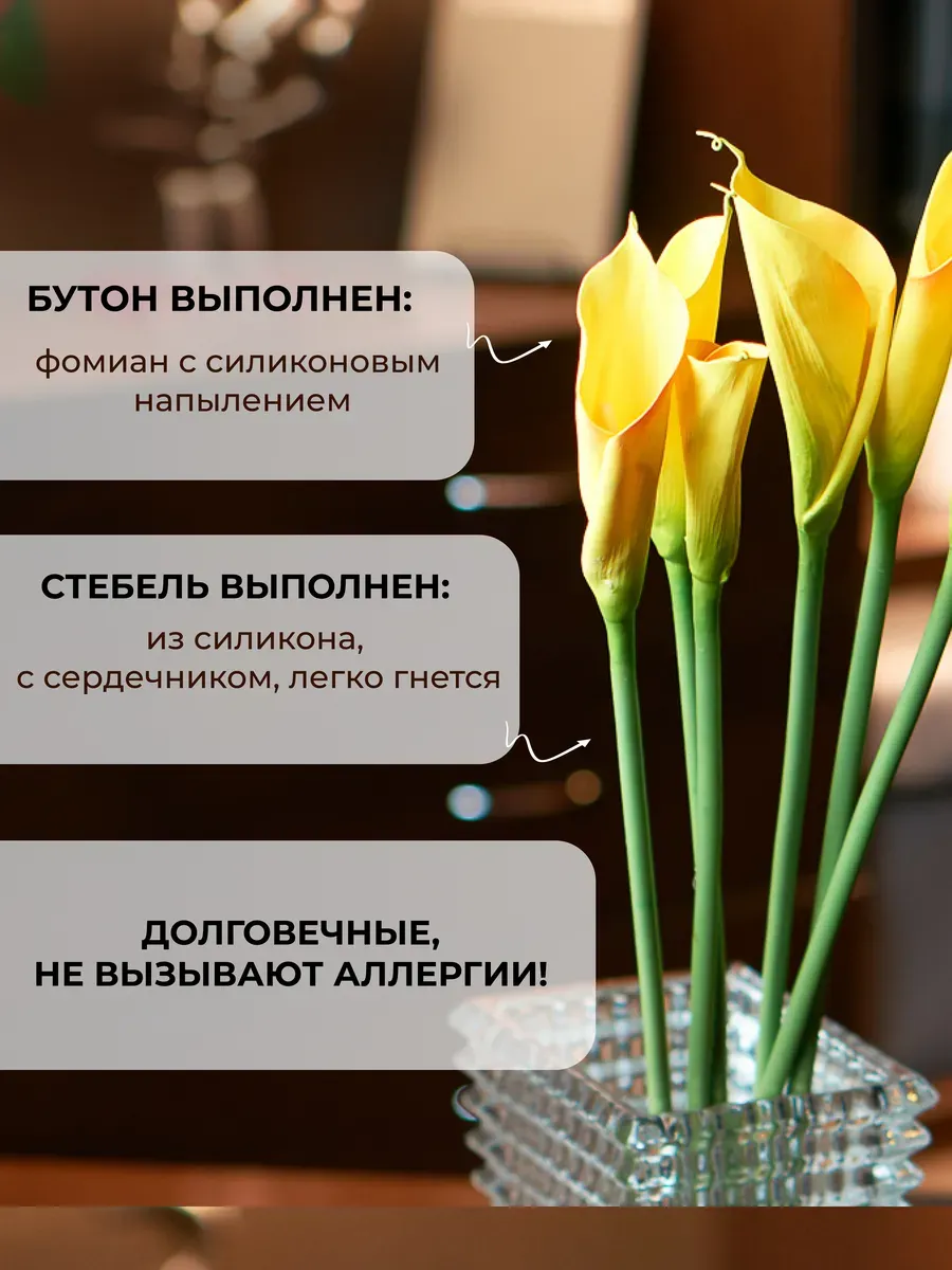 Долговечность: забудьте о постоянной замене увядших букетов. Искусственная калла будет радовать вас своей свежестью долгие годы.