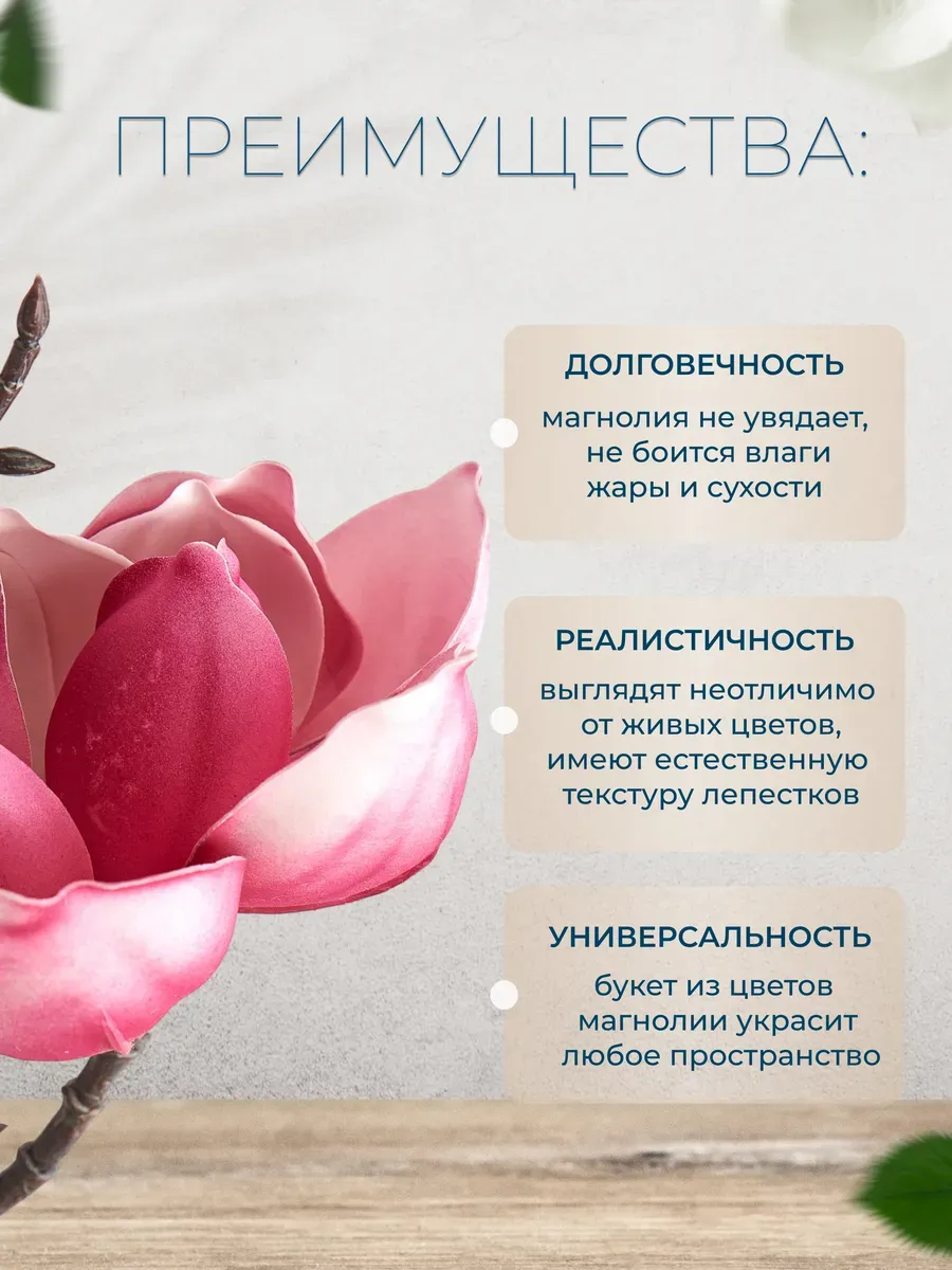 Будьте первым, кто оставил отзыв на “Искусственные цветы магнолия для декора”
