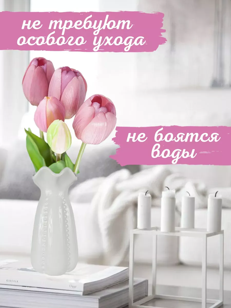 И эта красота не увянет через пару дней! Наш букет из 5 искусственных тюльпанов (40 см) – это идеальное решение для создания атмосферы праздника и уюта в любом интерьере.