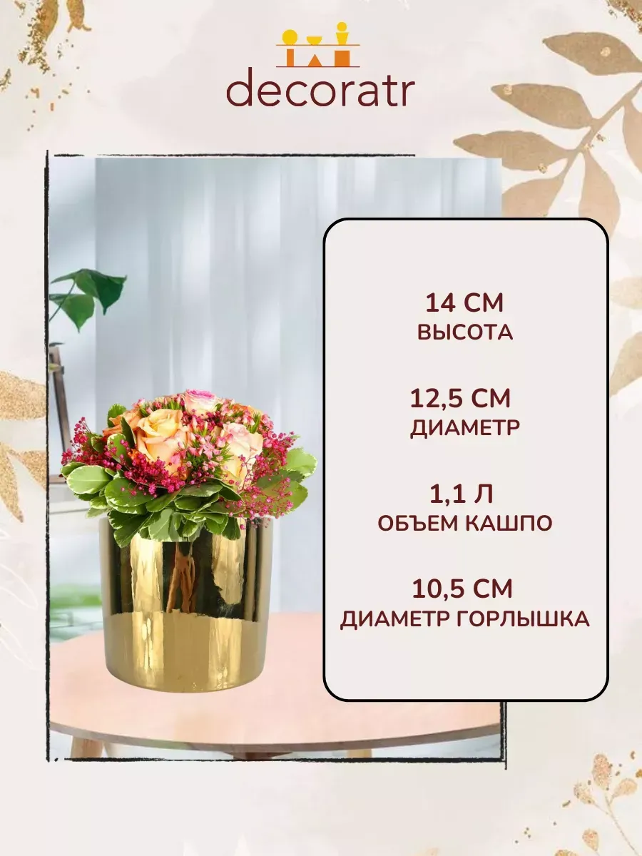 Кашпо керамическое золотое, низкое и широкое, высота 14 см, настольное, глянцевое и непрозрачное, без декора. Ищете что-то, чтобы ваш интерьер заиграл новыми красками? Тогда этот шедевр – именно то, что нужно! Керамическая ваза станет настоящей изюминкой вашего интерьера! Эта красавица отлично впишется в любой вид интерьера: будь то стильный лофт, уютный scandi или строгая классика.…
