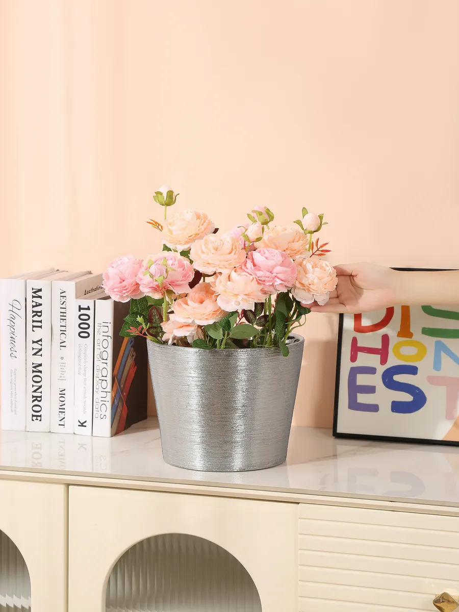 Представьте момент, когда вы входите в комнату, и взгляд мгновенно притягивает сияющая серебристая ваза высотой 23 см с роскошным букетом пионов или роз. Вот оно — то самое ощущение совершенства интерьера! Ваза «Лунное Сияние» — это не просто керамическая ваза для цветов, а настоящее произведение искусства, которое заставит ваш дом заиграть новыми красками.