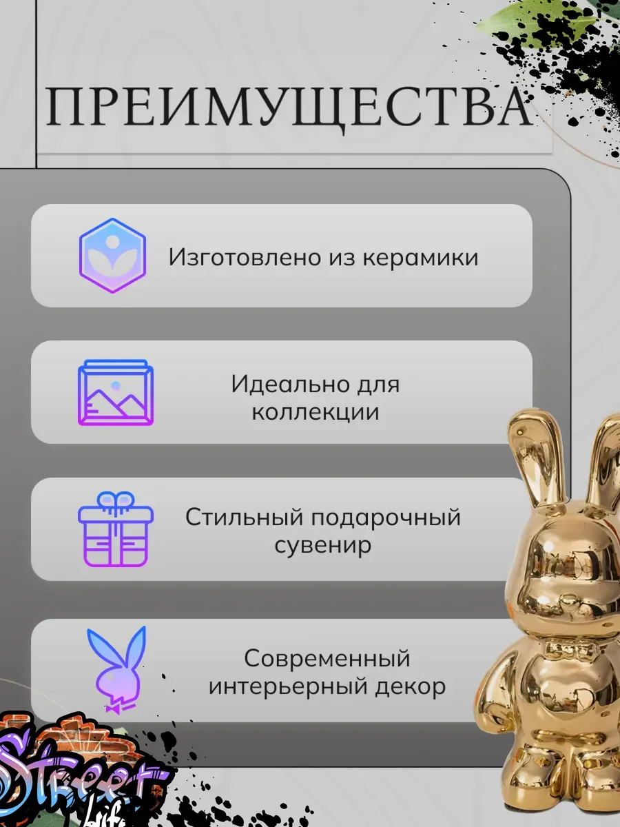 Ищешь идеальную статуэтку для своего дома? Тогда обрати внимание на эти крутые статуэтки Бербрик. Фигурка Kaws уже давно завоевала популярность среди коллекционеров и ценителей прекрасного. Коллекционная фигурка зайца — это настоящее сокровище для всех поклонников фэшн стиля, аниме статуэток и оригинальных предметов декора. Статуэтка в форме кролика bearbrick представляет собой настоящее произведение искусства, которое дополнит интерьер вашего дома и станет важным предметом коллекции. Зайка Беарбрик выдержан в минималистичном дизайне и изготовлен из керамики с качественным цветным покрытием. Благодаря мастерству изготовителей каждая деталь кролика Bearbrick выполнена с особым вниманием, что делает его по-настоящему уникальным. Стильная керамическая статуэтка зайца станет прекрасным подарком для себя или в качестве оригинального презента для близкого человека. Стильные, модные и практичные, они точно не оставят равнодушными никого.Не упускайте возможность добавить в свой дом стильную фигурку, которая не только приносит пользу и комфорт, но и является отличным дополнением в коллекцию Бербрик.Комбинируйте и собирайте различные статуэтка кролик барбрик, чтобы создать неповторимую композицию, отражающую ваш индивидуальный вкус и стиль!