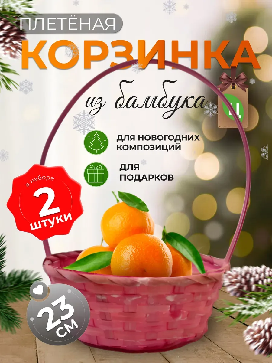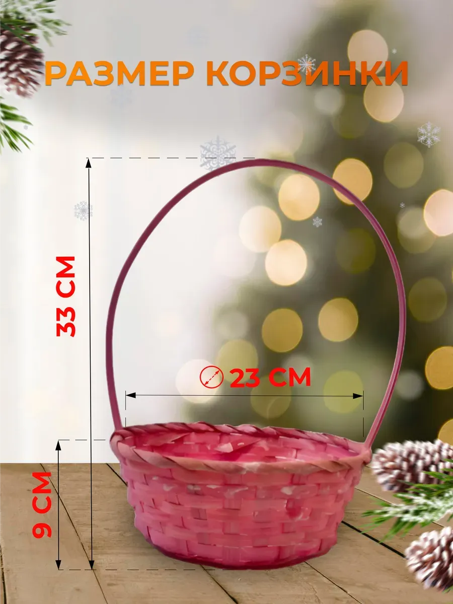 Корзинка плетеная с ручкой из бамбука розовая 2 шт d-23см