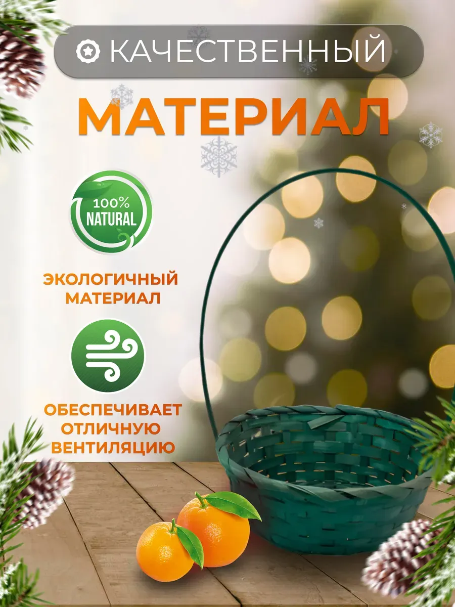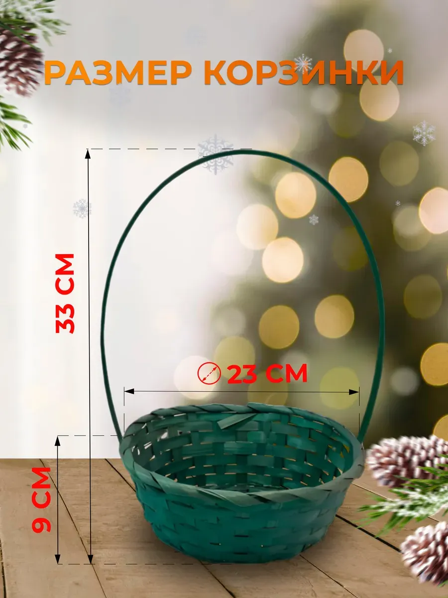 Корзинка плетеная с ручкой из бамбука 1 шт зеленая d-23 см