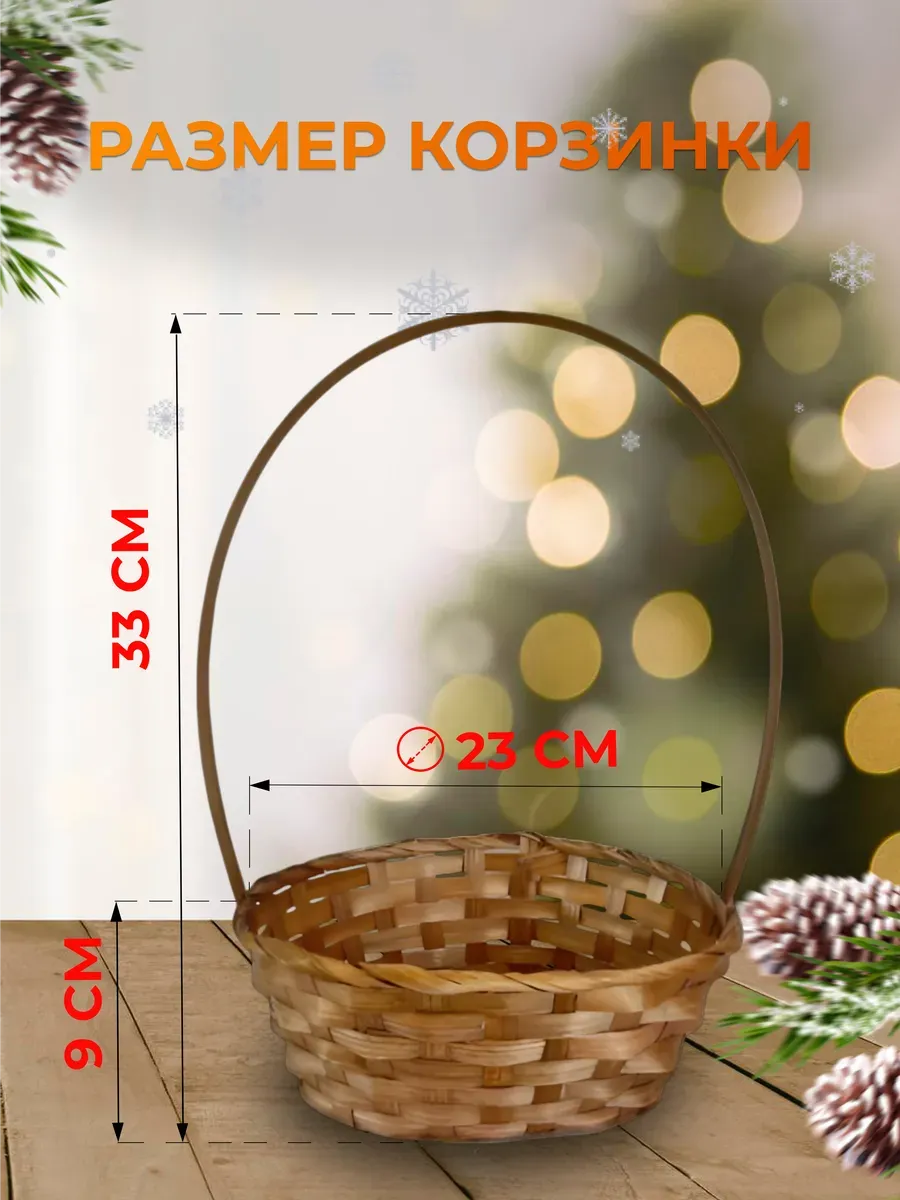 Корзинка плетеная с ручкой из бамбука 1 шт корич d-23 см