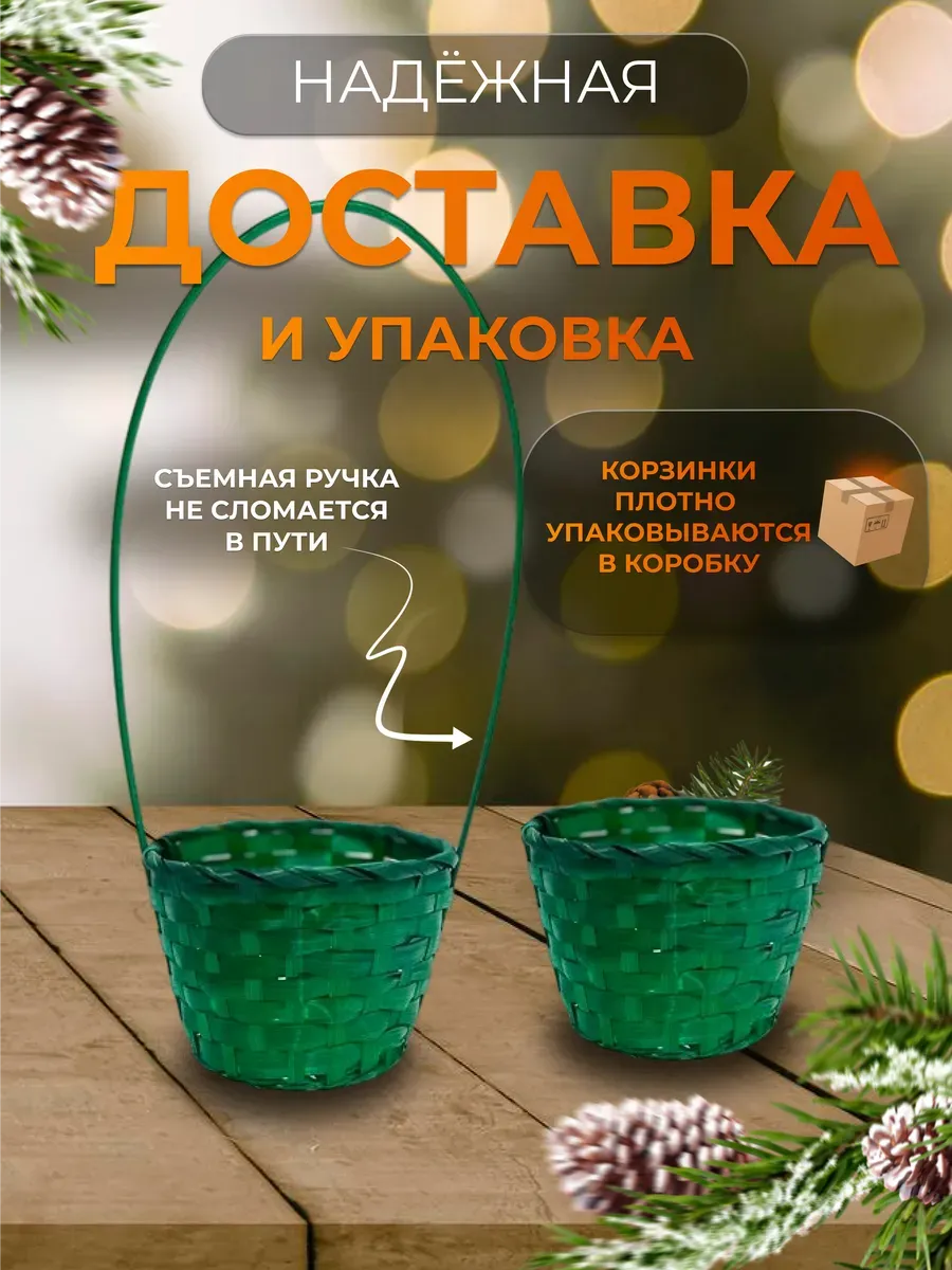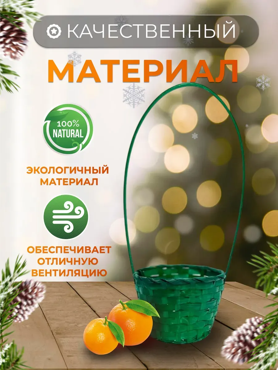 Корзинка плетеная с ручкой из бамбука зеленая 15 шт d-13 см