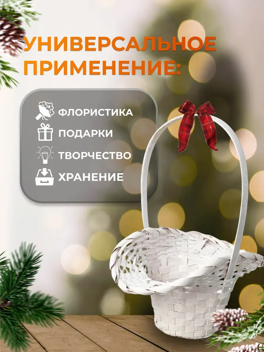 • Корзинка с ручкой идеально подходит для небольших букетов.