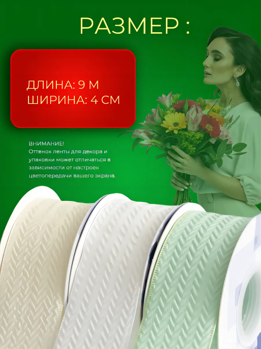 ВНИМАНИЕ! Оттенок ленты для рукоделия может отличаться в зависимости от настроек цветопередачи вашего экрана. Лента репсовая 4 см — текстурная основа для премиальных букетов! Ширина 4 см, длина 9 м, полиэстер с тиснением — лента для флористов создаёт объёмный акцент за счёт рельефной поверхности с геометрическим узором. Плотность 165 г/м² обеспечивает надёжную фиксацию даже массивных…