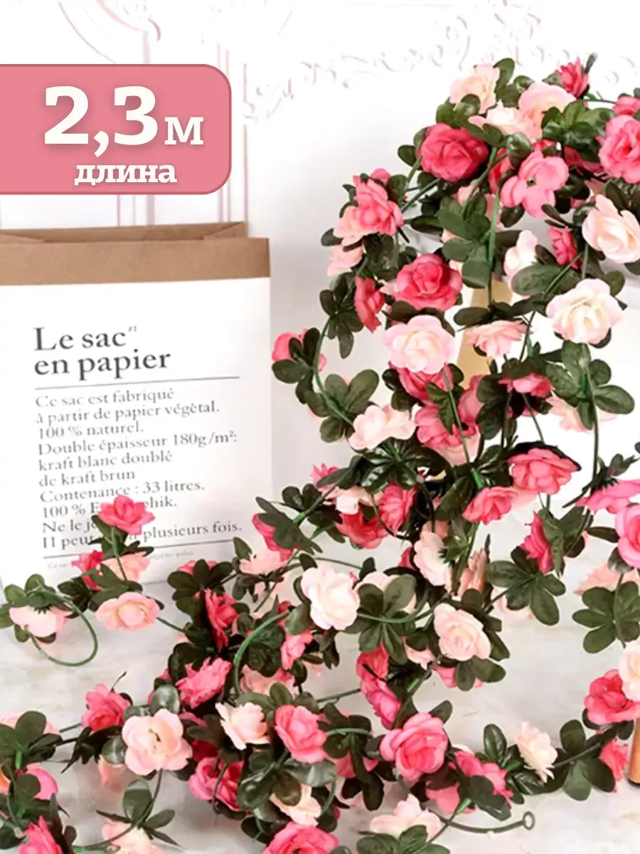 Лиана «Розовый Каскад» — искусственная гирлянда из роз для роскошного декора, 2 штуки по 230 см!