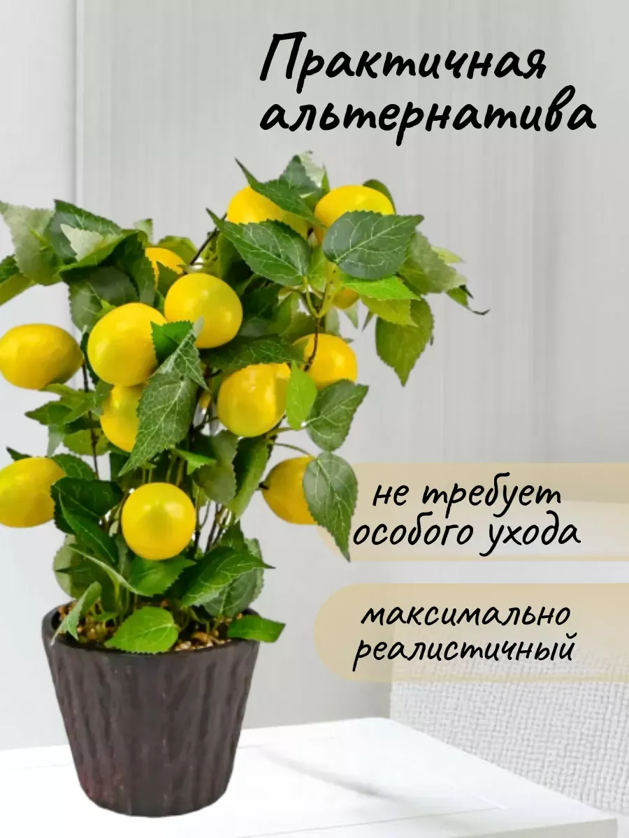 Наше искусственное лимонное дерево высотой 50 см — идеальный способ добавить свежесть и зелень в ваш дом или офис, не требуя особого ухода. Реалистичный вид и качественные материалы делают его удивительно привлекательным дополнением к любому пространству.